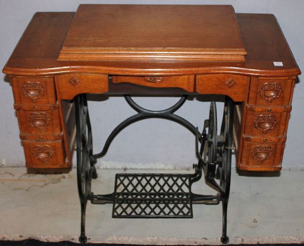 20th Century Oak Sewing Machine Case with Original Machine (has been refinished); 34" w., 19' d., 29" h. 20th Century Oak Sewing Machine Case with Original Machine (has been refinished); 34" w., 19' d., 29" h.