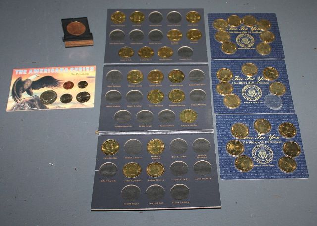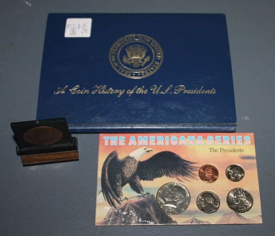 Group of Miscellaneous Coin Sets; set of five coins "Americana Series", group of presidential coins (minted in solid brass), Harry S. Truman Inaugural Coin Group of Miscellaneous Coin Sets; set of five coins "Americana Series", group of presidential coins (minted in solid brass), Harry S. Truman Inaugural Coin