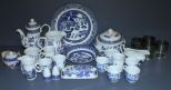 Churchill England Blue and White Willow Set, includes; charger, bowl, covered butter, teapot, sugar, creamer, pitcher, gravy and mugs; total 26 pieces including four tumblers Churchill England Blue and White Willow Set, includes; charger, bowl, covered butter, teapot, sugar, creamer, pitcher, gravy and mugs; total 26 pieces including four tumblers