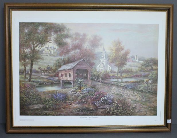 Limited Edition Framed Poster of Razzberry Creek Crossing by Carl Valente; 43" w., 33 1/2" h. Limited Edition Framed Poster of Razzberry Creek Crossing by Carl Valente; 43" w., 33 1/2" h.