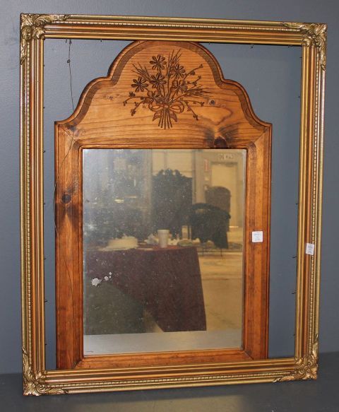Pine Mirror and Gold Frame; mirror 20" w., 30" h., frame 28" w., 33 1/2" h. Pine Mirror and Gold Frame; mirror 20" w., 30" h., frame 28" w., 33 1/2" h.