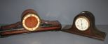 Two Vintage Mantel Clocks; one 25 1/2" w., 9" h.; one 18" w., 9" h. Two Vintage Mantel Clocks; one 25 1/2" w., 9" h.; one 18" w., 9" h.