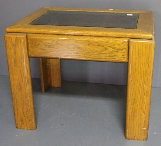 Contemporary Glass Top End Table; 23" w., 17 1/2" d., 19" h. Contemporary Glass Top End Table; 23" w., 17 1/2" d., 19" h.