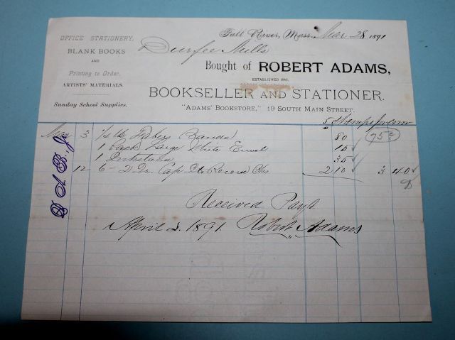 1873 Freight Receipt form Portland and Ogdensburg Railroad co. 1891 Fall River Mass book Store Receipt (Robert Adams) 1873 Freight Receipt form Portland and Ogdensburg Railroad co. 1891 Fall River Mass book Store Receipt (Robert Adams)