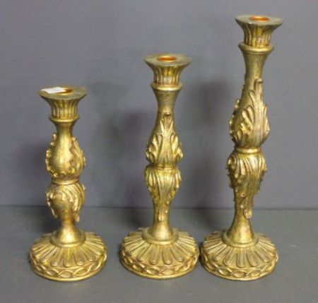 573 Three Decorative Gold Painted Candlesticks Description