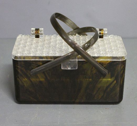 655 Vintage Lucite Faux Tortoise Shell Purse Description