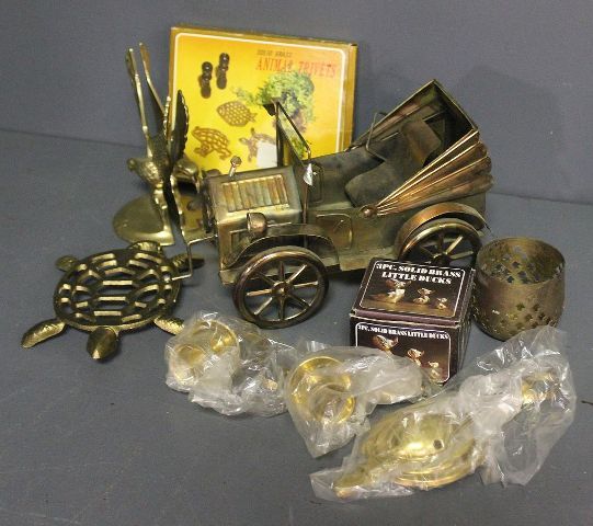 Group of Brass Items, includes; Model T. Eagle Bookends, trivets Group of Brass Items, includes; Model T. Eagle Bookends, trivets