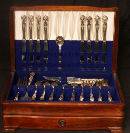 57 Piece Silver Plate Service. W. Rogers & Son (extra plate) 57 Piece Silver Plate Service. W. Rogers & Son (extra plate)