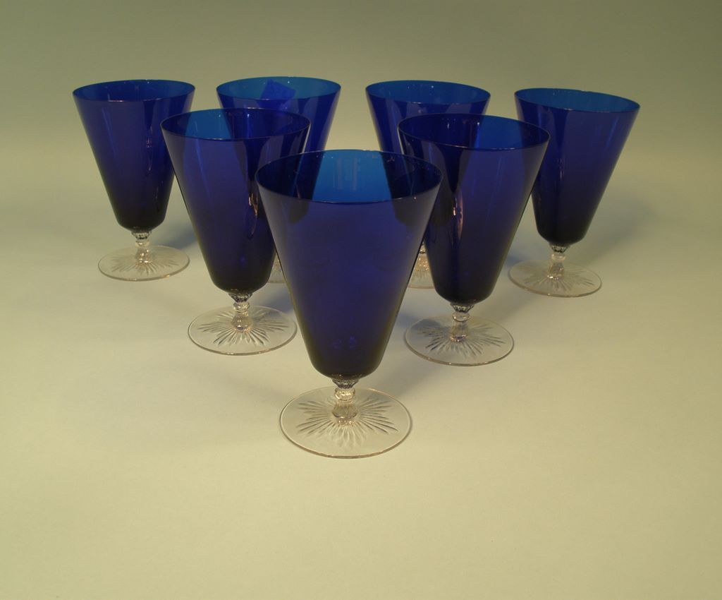 115 Set of 11 Cobalt blue Sherbert Stems, Set of 7 cobalt Blue Water Glasses, Set of 9 Cobalt Blue Champagne Stems, Set of 8 Cobalt Blue Iced Tea Glasses