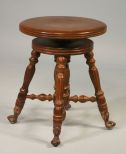 Walnut turn of the century piano stool w/glass ball feet, 14 3/4" round x 18"h Walnut turn of the century piano stool w/glass ball feet, 14 3/4" round x 18"h