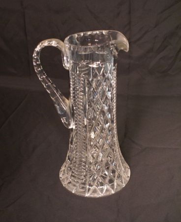 Large American Brilliant Cut Glass Lemonade Pitcher w/lattice design panel pattern, 14 1/2"h Large American Brilliant Cut Glass Lemonade Pitcher w/lattice design panel pattern, 14 1/2"h