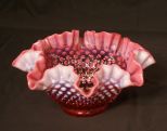 159 Fenton Cranberry Opalescent Hobnail Brides Bowl