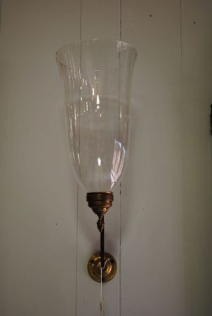 Pair 19th Century Brass Wall Sconces w/original hurricane shades, 6"h Pair 19th Century Brass Wall Sconces w/original hurricane shades, 6"h