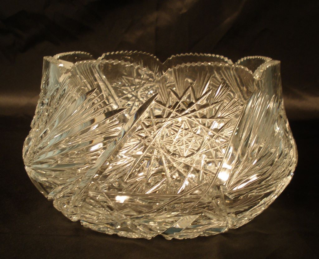 German cut glass bridges bowl, 9" round, 5" height. German cut glass bridges bowl, 9" round, 5" height.