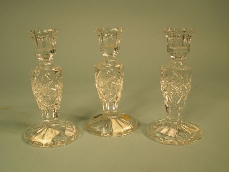 Set of Three Press Glass Candlesticks. 5 1/2"h Set of Three Press Glass Candlesticks. 5 1/2"h