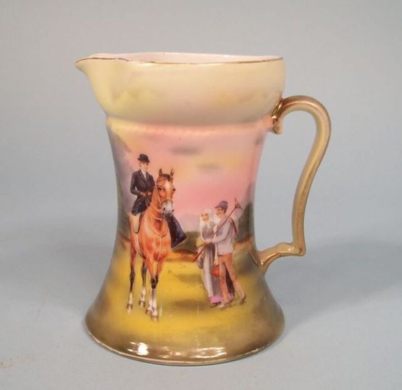 Royal Bayreuth Pitcher w/hand painted hunting scene. 5"h Royal Bayreuth Pitcher w/hand painted hunting scene. 5"h