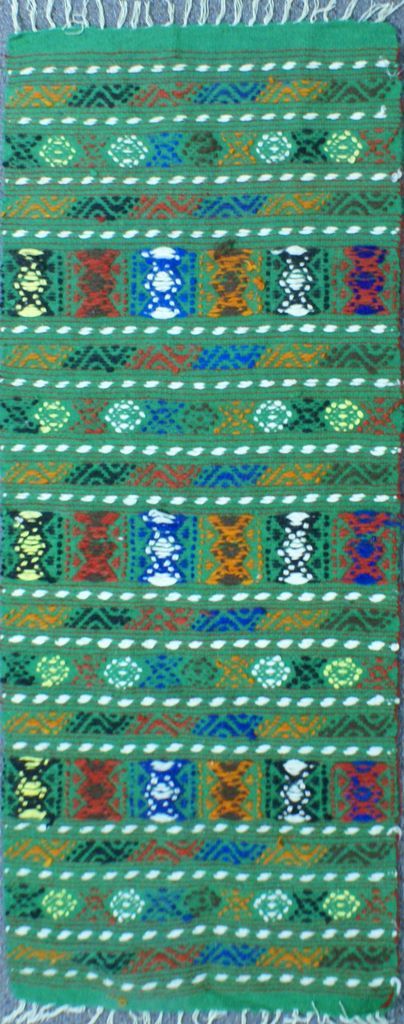 Indian Blanket, green background w/multi-color design. 23 1/2"w x 55"l Indian Blanket, green background w/multi-color design. 23 1/2"w x 55"l