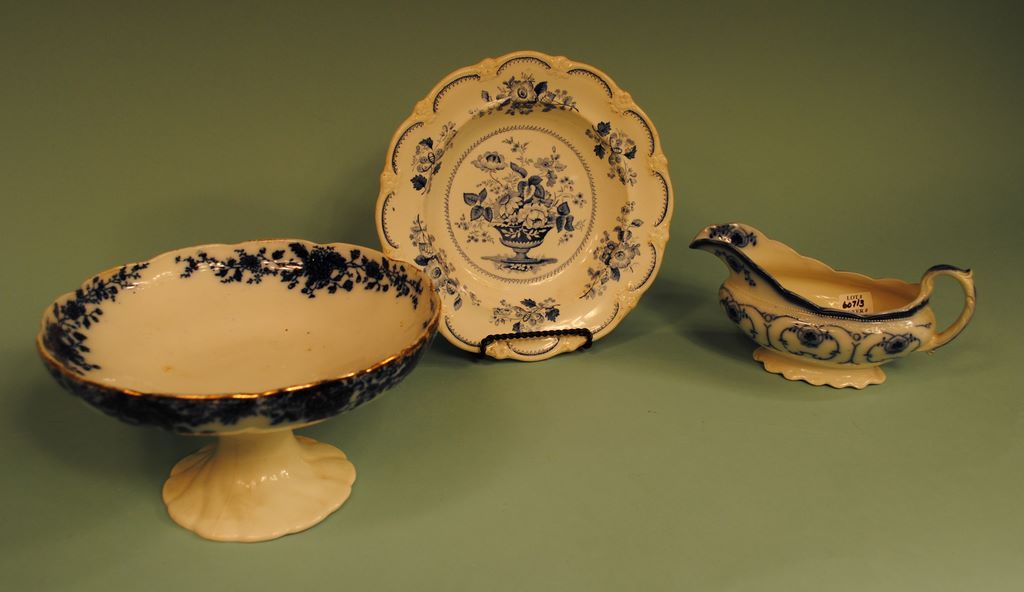 Blue Mark FB - Old English Flow Blue compote, gravy and bowl 9" round x 4 1/2"h Blue Mark FB - Old English Flow Blue compote, gravy and bowl 9" round x 4 1/2"h
