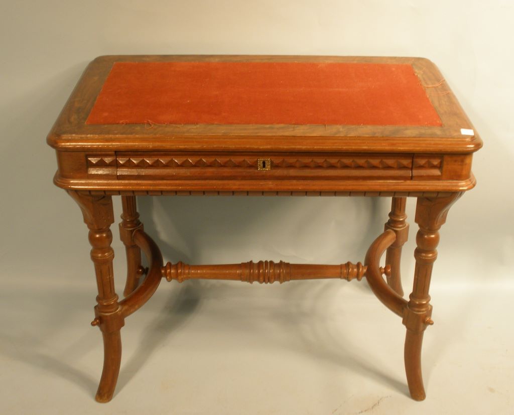 Walnut Eastlake Writing Desk with Leather Top. -h. 29" x w. 35 1/2" d. 21 1/2" Walnut Eastlake Writing Desk with Leather Top. -h. 29" x w. 35 1/2" d. 21 1/2"