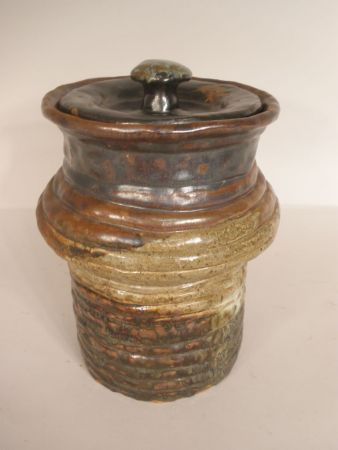 Coil Pot Pottery pot with lid by Mark Lord, a New Hampshire artist in the early 1970's. Coil pottery is the oldest form of pottery. Coil pottery is made by coiling long ropes of clay in a spiral. The coils are pinched together with hot water and then fired. 12"H Coil Pot Pottery pot with lid by Mark Lord, a New Hampshire artist in the early 1970's. Coil pottery is the oldest form of pottery. Coil pottery is made by coiling long ropes of clay in a spiral. The coils are pinched together with hot water and then fired. 12"H
