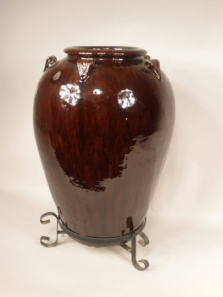 Large High Gloss Pottery Pot with stand, dark brown color. 28 h Large High Gloss Pottery Pot with stand, dark brown color. 28 h
