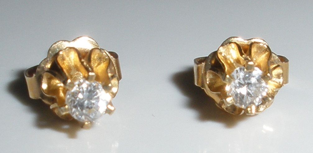 14K yellow gold buttercup diamond earrings, 15 pts. T/W and round cut 14K yellow gold buttercup diamond earrings, 15 pts. T/W and round cut