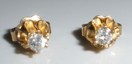 358 14K yellow gold buttercup diamond earrings, 15 pts. T/W and round cut