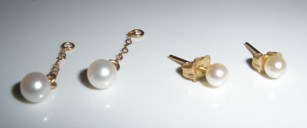 Pretty pair of 4 mm Pearl Earrings with 4mm pearl jackets Pretty pair of 4 mm Pearl Earrings with 4mm pearl jackets