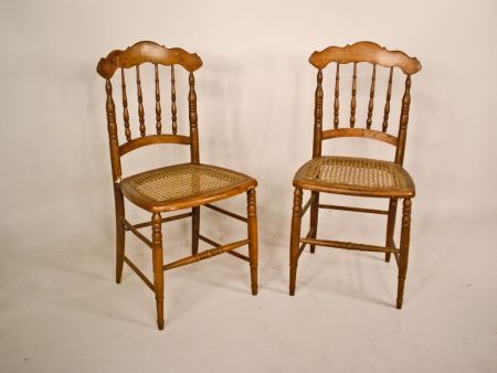 Two Cottage Cane Seat Chairs, with spindle backs, 34 H 16w Two Cottage Cane Seat Chairs, with spindle backs, 34 H 16w