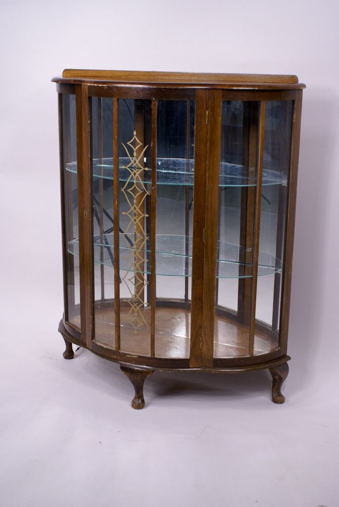 Queen Anne Curved Display case English, with glass door and shelved, h. 43, w. 34 1/2. Queen Anne Curved Display case English, with glass door and shelved, h. 43, w. 34 1/2.