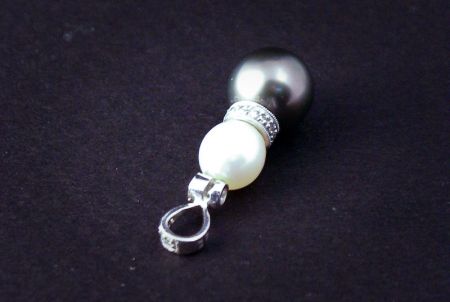 436 One Drop Style White & Black Freshwater Pearl & Diamond Pendant.