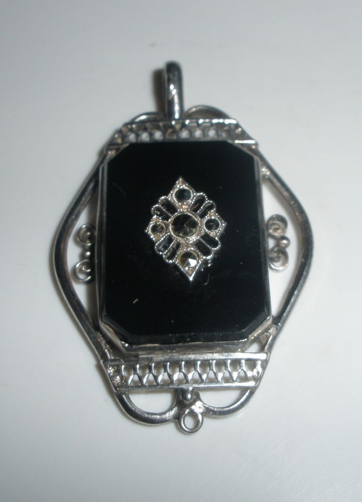 Pretty Sterling Silver Marcasite Black Onyx Necklace. Pretty Sterling Silver Marcasite Black Onyx Necklace.