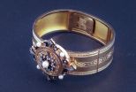Victorian Diamond Bangle Bracelet, gold, with diamonds and pearls, with large center pearl. Victorian Diamond Bangle Bracelet, gold, with diamonds and pearls, with large center pearl.