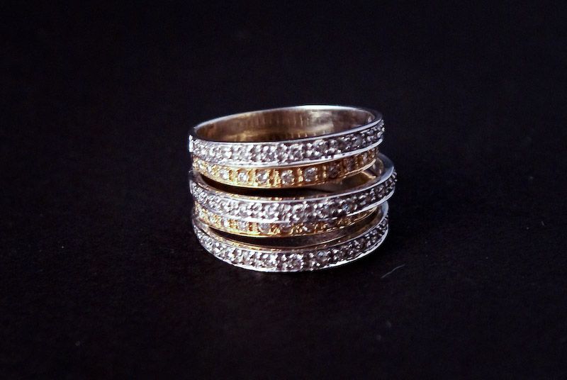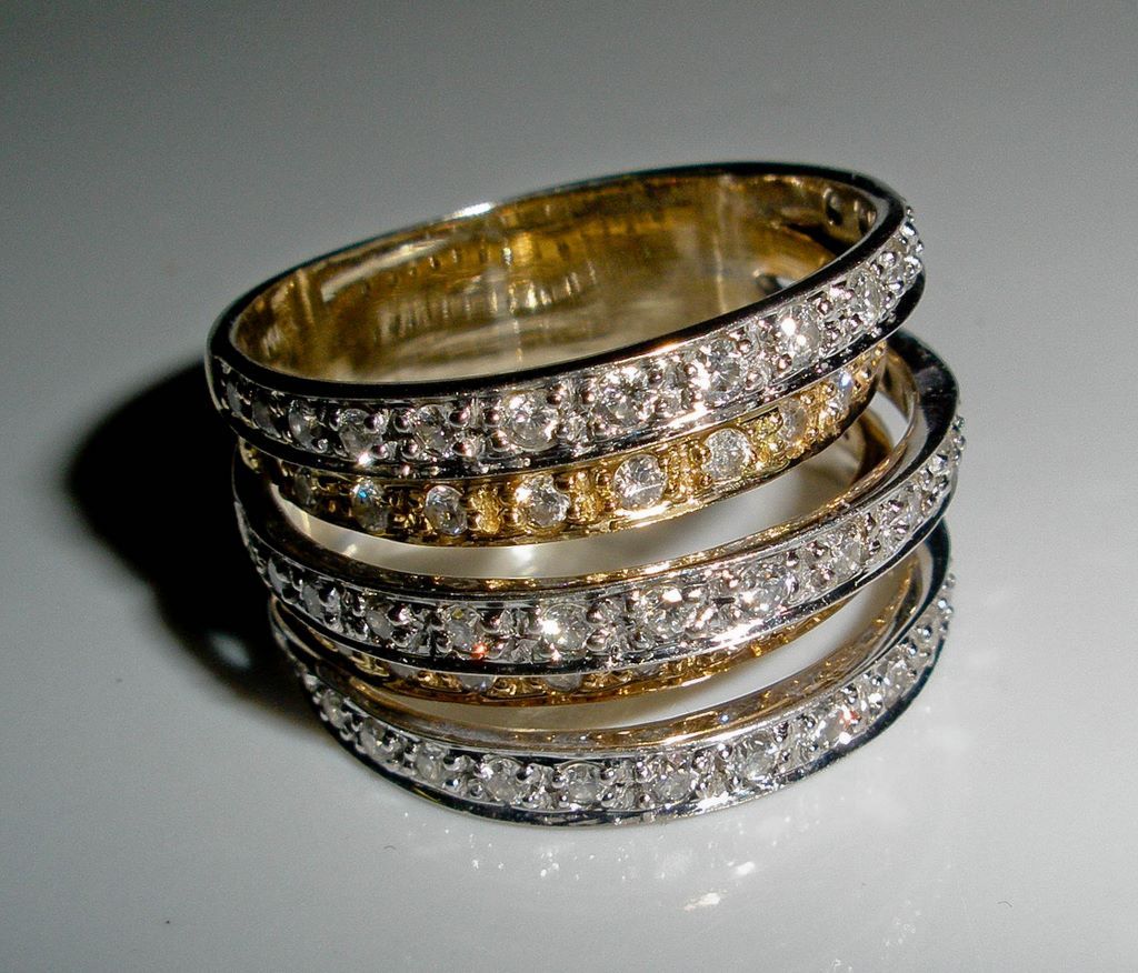 Unique Gold & Silver 5 band ring, missing one diamond. Unique Gold & Silver 5 band ring, missing one diamond.