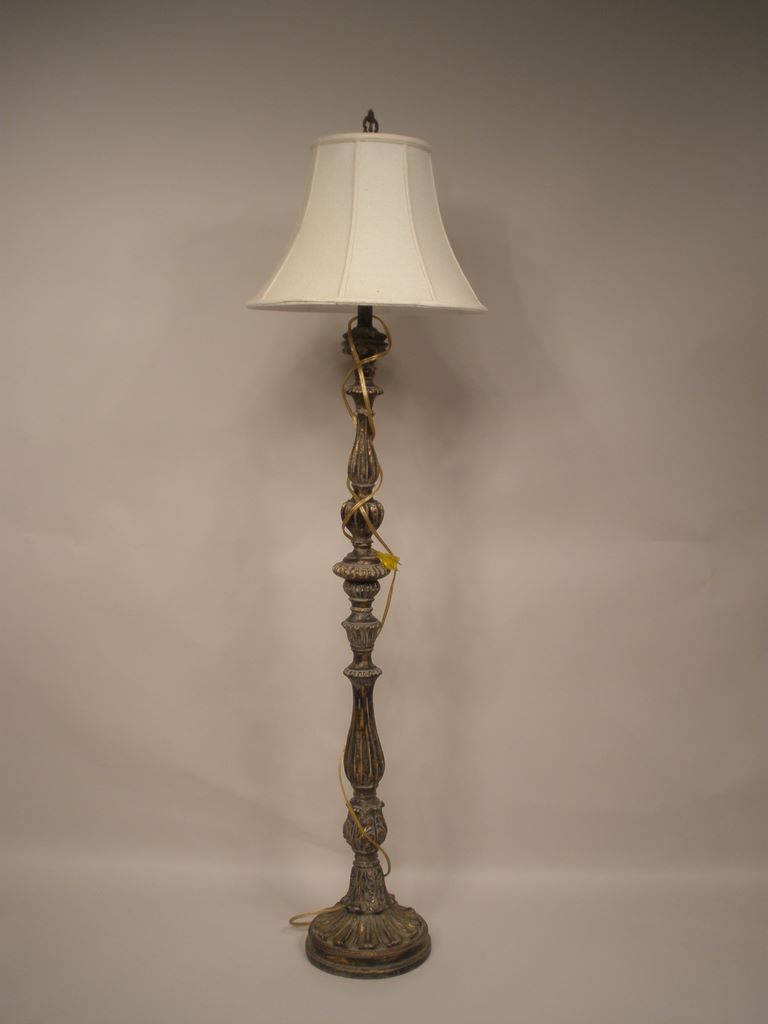 Carved Floor Lamp with shade in grey tones, 60 h Carved Floor Lamp with shade in grey tones, 60 h