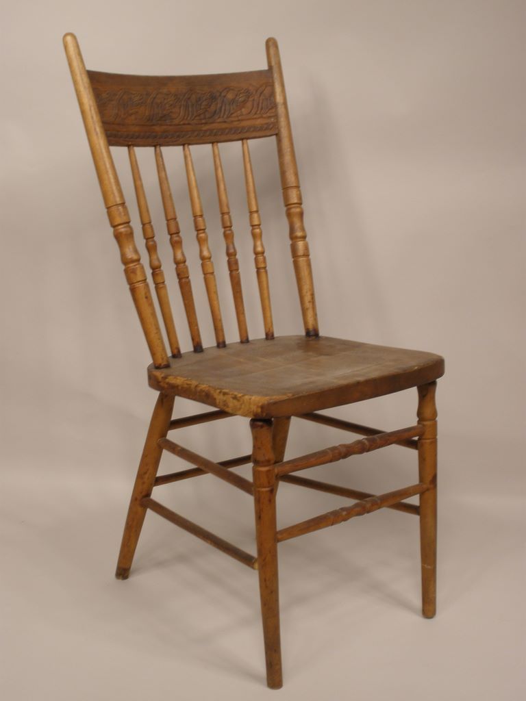 19th Century Oak Spindle Pressed Back Chair with carved corn motif, 44 1/2 h 18 1/2 w 19th Century Oak Spindle Pressed Back Chair with carved corn motif, 44 1/2 h 18 1/2 w