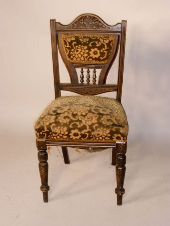 Beautiful Walnut Side Chair with harp shaped back and velveteen upholstery., 36 1/2 H 17 1/2W Beautiful Walnut Side Chair with harp shaped back and velveteen upholstery., 36 1/2 H 17 1/2W