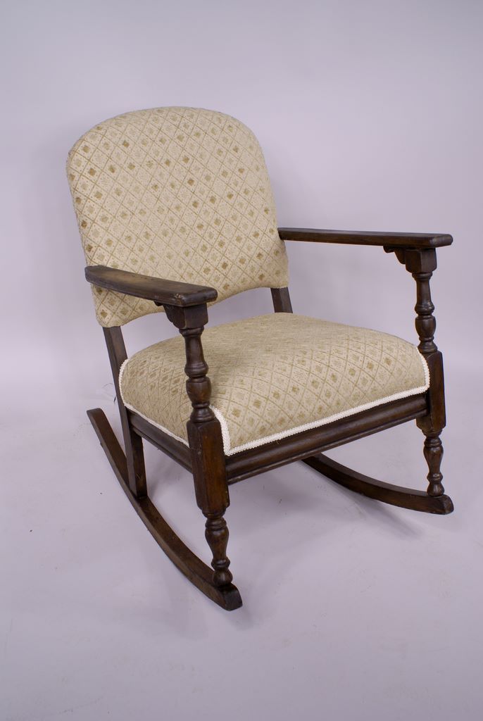 Upholstered and Wood Rocking Chair, 31 1/4 H 19 W 18 D Upholstered and Wood Rocking Chair, 31 1/4 H 19 W 18 D