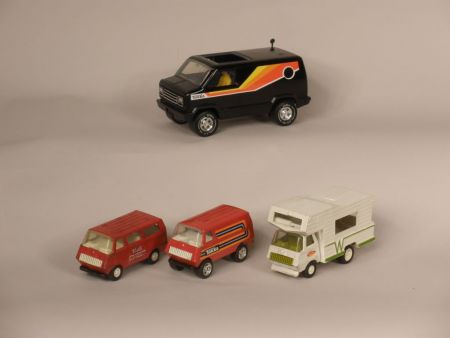 Tonka Black Van, Winnebago, Tonka red small van, Tonka Red Fire Chief Van. Tonka Black Van, Winnebago, Tonka red small van, Tonka Red Fire Chief Van.