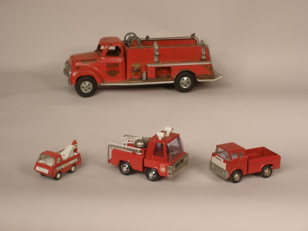 Red mini Fire truck, Buddy L. Japan, Red Marx truck: Marx toys, Japan, Tonka Fire Truck Mound,Minn, Tonka Tow Truck Made in USA. Red mini Fire truck, Buddy L. Japan, Red Marx truck: Marx toys, Japan, Tonka Fire Truck Mound,Minn, Tonka Tow Truck Made in USA.