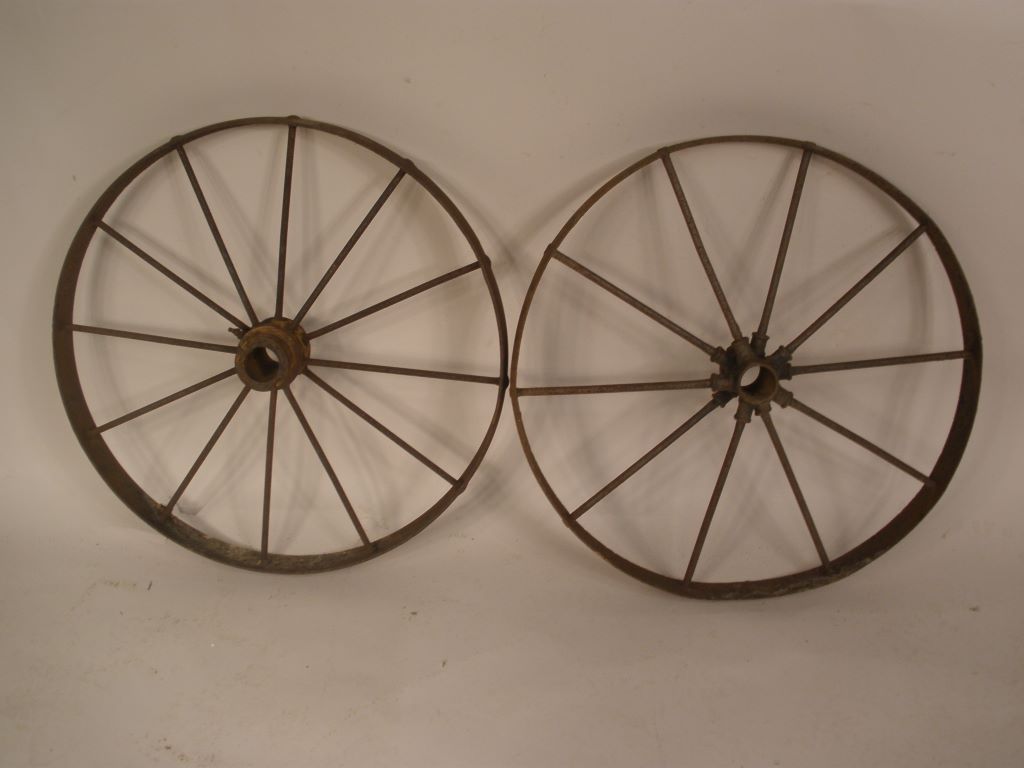 2 Small Iron Wheels, dia. 26". 2 Small Iron Wheels, dia. 26".