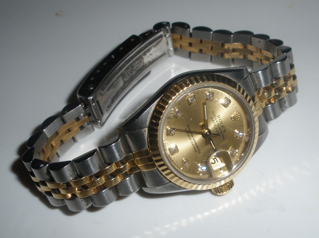 Ladies Rolex, with 18K braclet. Quick set. Diamond dial. Stem for winding needs repair. Jeweler estimate for repair is $200.00. Ladies Rolex, with 18K braclet. Quick set. Diamond dial. Stem for winding needs repair. Jeweler estimate for repair is $200.00.