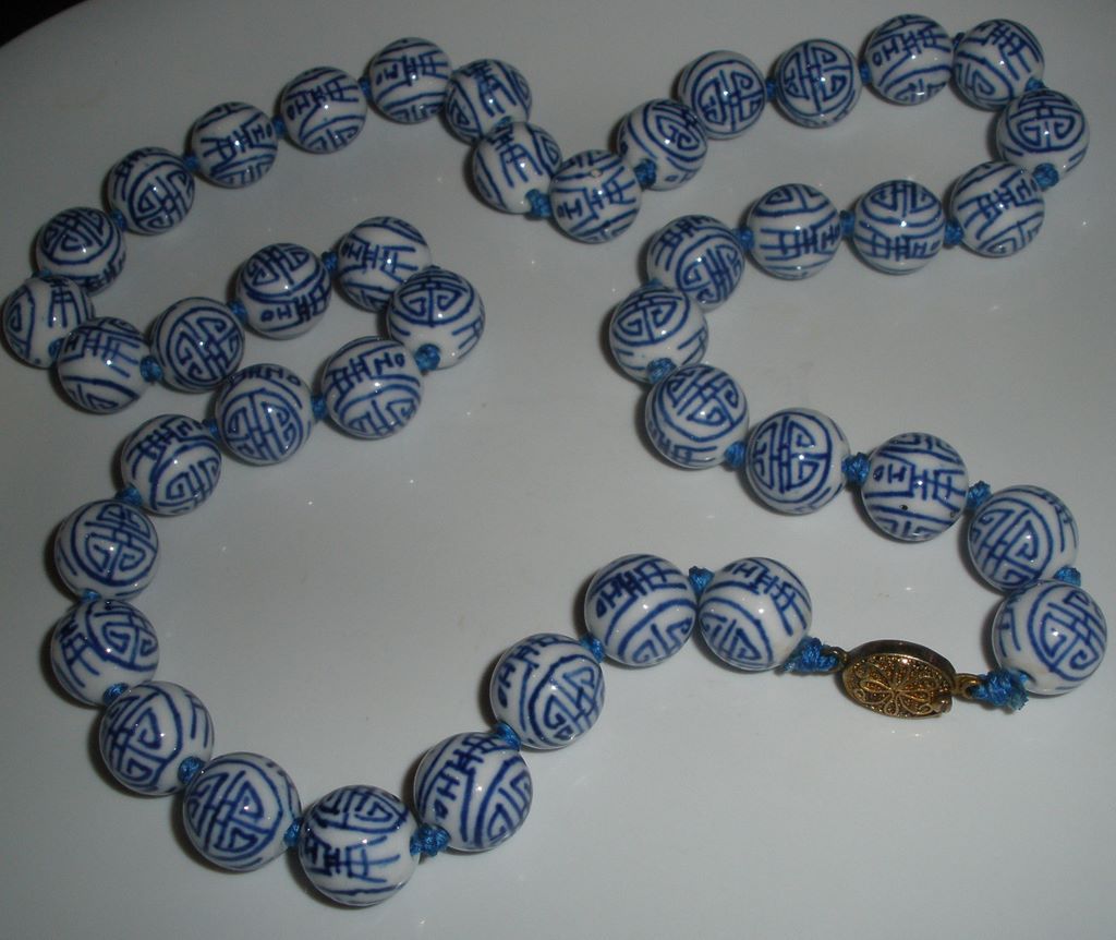 Beautiful Blue and White Glass Bead Cloisonne' Necklace. Beautiful Blue and White Glass Bead Cloisonne' Necklace.