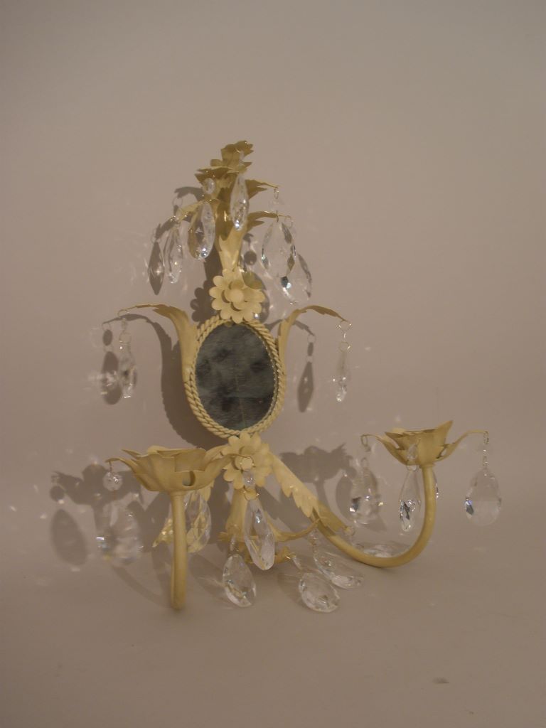 Two Candle wall sconce with mirror and glass prisms. Two Candle wall sconce with mirror and glass prisms.