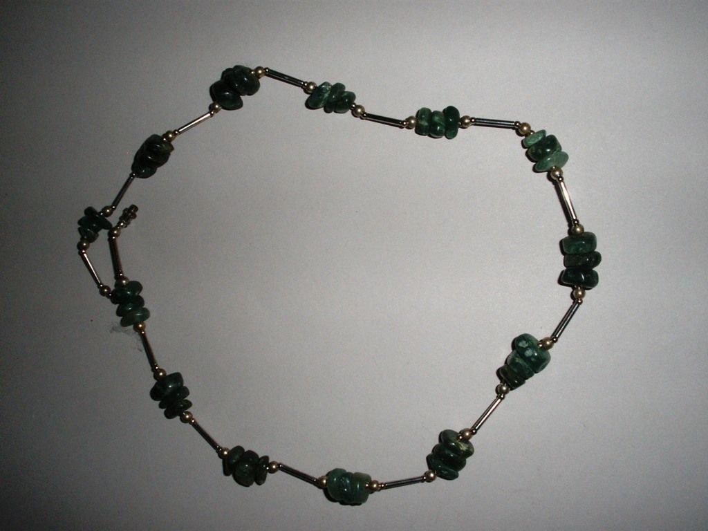 Pretty Jade and Sterling Necklace. Necklace is 21" L with 13 sets of 3 Round Jade Stones separated by Silver beads. Pretty Jade and Sterling Necklace. Necklace is 21" L with 13 sets of 3 Round Jade Stones separated by Silver beads.