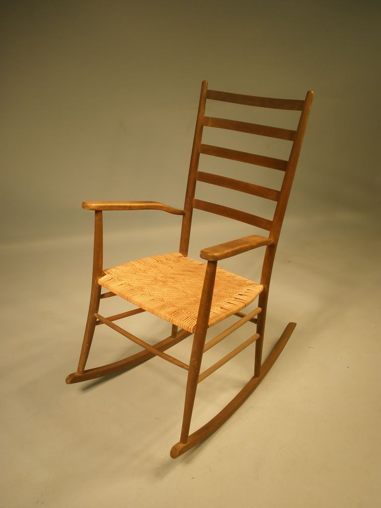 Shaker Style Ladder Back Rocking Chair with Wicker Seat, from Springfield Plantation Home. - h. 40 1/2" x w. 19 3/4" Shaker Style Ladder Back Rocking Chair with Wicker Seat, from Springfield Plantation Home. - h. 40 1/2" x w. 19 3/4"