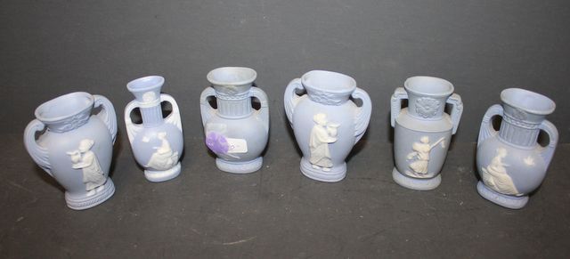 117 Six Wedgewood (Japan) Style Vases 3"h.