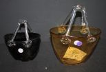 Two Glass Baskets 7" - 10"h. Two Glass Baskets 7" - 10"h.