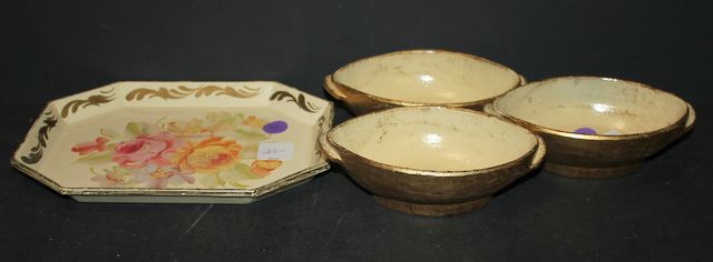 148 Metal Octagon 8" Tray and Three 6" Oval Dishes Dishes