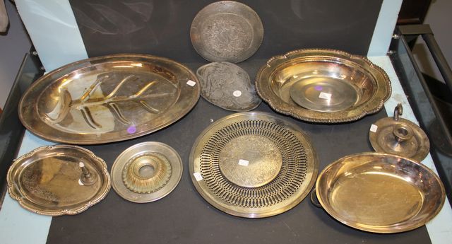 Silverplate Oval Platter, Trays, and Candlestick Silverplate Oval Platter, Trays, and Candlestick